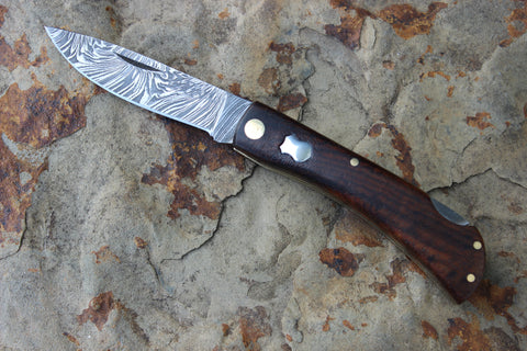El Gallo EG99jrLdam Wood Handle Small Lockback Damascus