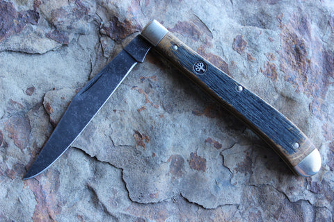 Castle Burg is a landmark of the Bergisches Land, rising above the river Wupper near the Boker Manufactory. Count Adolf II. von Berg had the castle constructed on the foundations of a 10th-century fortress. It was finished in 1133. Today, it is one of the biggest castles in western Germany, inseparably connected to the Duchy of Berg and the Counts von Berg (1068-1225). Even today, Burg Castle still reflects the enormous wealth of the dynasty and their far-reaching influence in Northrhine-Westphalia. Count Engelbert II. von Berg was also the Archbishop of Cologne. Böker keeps in touch with the historians of Burg Castle because the corporate history can be traced back to 1674, when the tree was first entered as the company's trade symbol for tools, and because their history is closely connected to that of the Bergisches Land. Right now, large parts of the castle are being faithfully restored. This includes the replacement of ancient solid oak planks. This inspired Böker to preserve the historic material for future generations, skillfully turning it into handle scales. Apart from the scales of historic oak wood sourced from Burg Castle, the knives also feature brass liners and O1 carbon steel blades. The blades are finished with a special acid wash, which protects them from harmful environmental impact. All styles are handcrafted by Böker Manufactory Solingen as a strictly limited edition of 1133 pieces worldwide and individually numbered. They come with a new version of the historic Böker tree symbol and each box is numbered.
